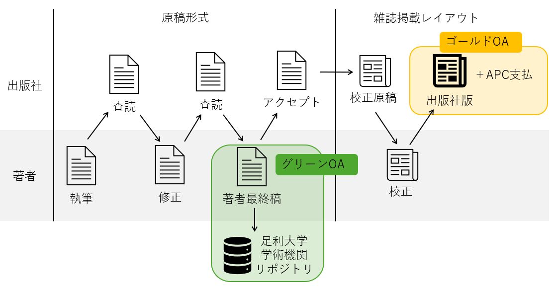 | グリーンOA(リポジトリで公開) | ゴールドOA(出版社サイトで公開) | |